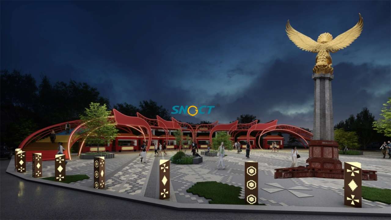 設(shè)計(jì)思路:設(shè)計(jì)以馬爾康嘉絨驛站“嘉絨圣地、夢(mèng)之凈土”為指導(dǎo)理念,通過對(duì)當(dāng)?shù)乇就廖幕M(jìn)行分析,提取出藍(lán)色、金翅、土地、紋飾幾個(gè)元素對(duì)應(yīng)的顏色,在不影響銷售區(qū)的采光和結(jié)構(gòu)完整性的基礎(chǔ)上,對(duì)觀景平臺(tái)進(jìn)行整體化設(shè)計(jì)。并結(jié)合馬爾康的好山好水好景特色,設(shè)置天空之境打卡點(diǎn)。